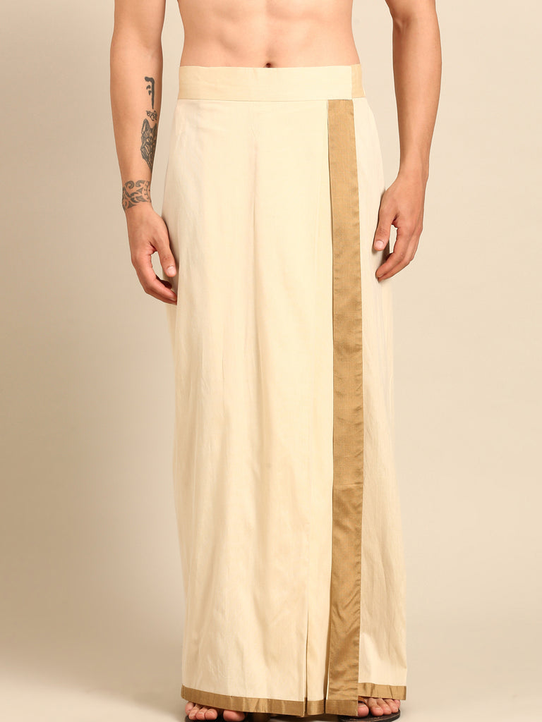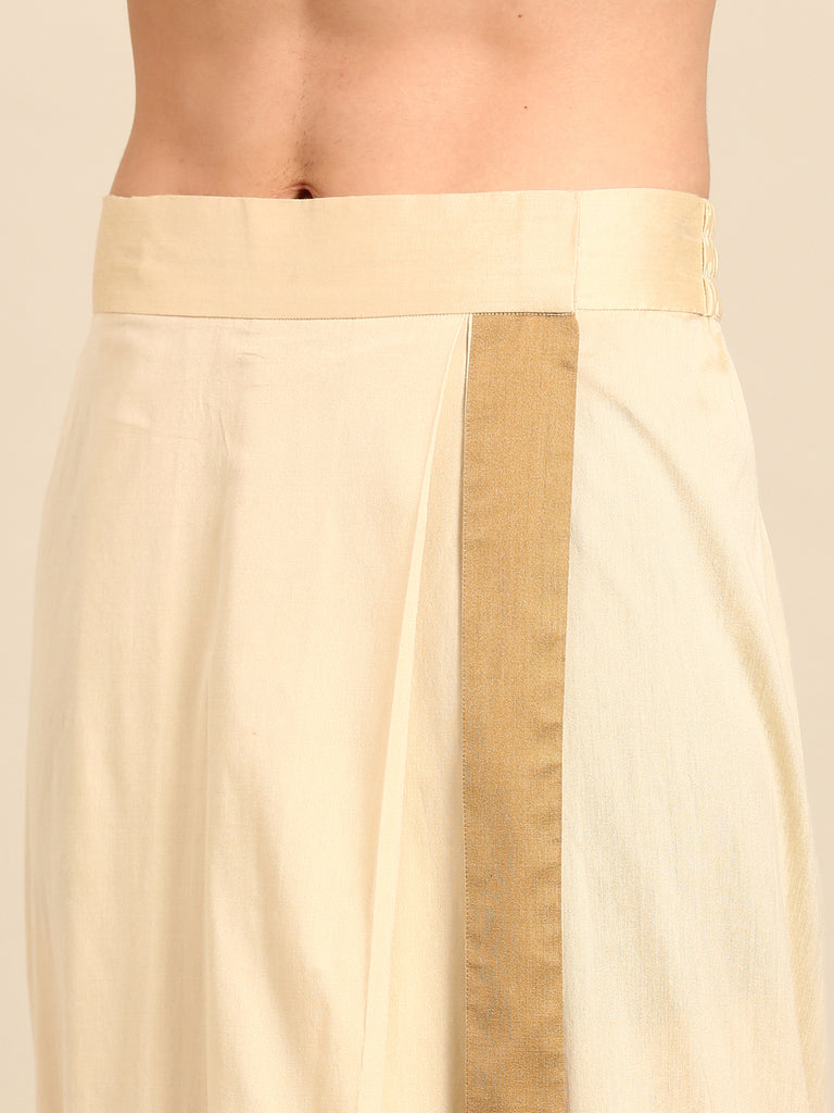 Beige & Gold Silk/Cotton Dhoti Skirt - MMDHOTI012