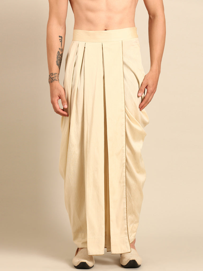 This blue and gold Banarasi silk kurta set features a contemporary dhoti-skirt silhouette, blending traditional craftsmanship with modern flair. Rich in texture and regal in appeal, it’s perfect for weddings, festive events, and grand celebrations.