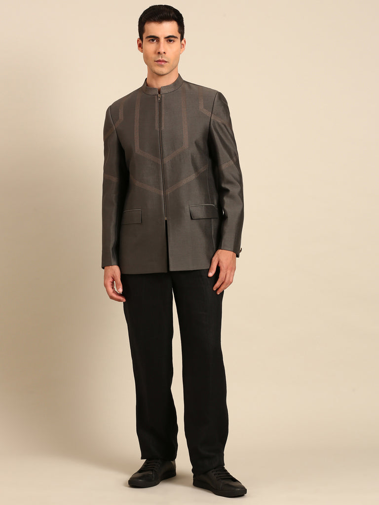 Char Grey & Gold Cotton Silk Bandhgala - MMJ0169