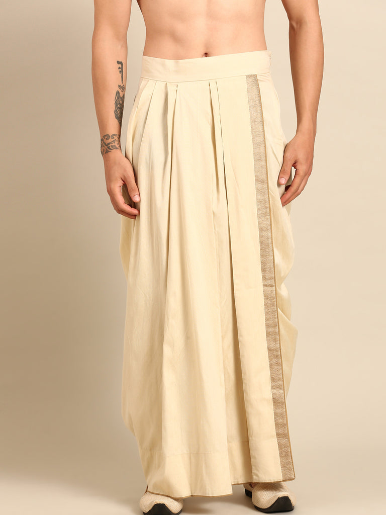 Crafted in luxurious silk jacquard, this gold sherwani exudes regal sophistication. With its rich texture and elegant sheen, it’s perfect for weddings, grand celebrations, and formal occasions.