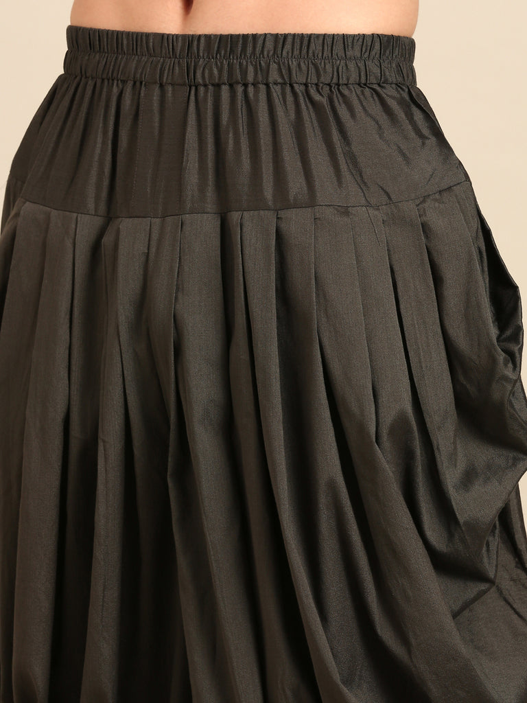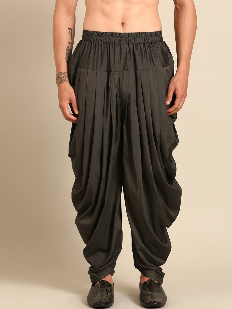 This maroon Bemberg silk sherwani features intricate black embroidery and is paired with a black Patiala, creating a striking and regal ensemble. Perfect for weddings, festive occasions, and evening celebrations.