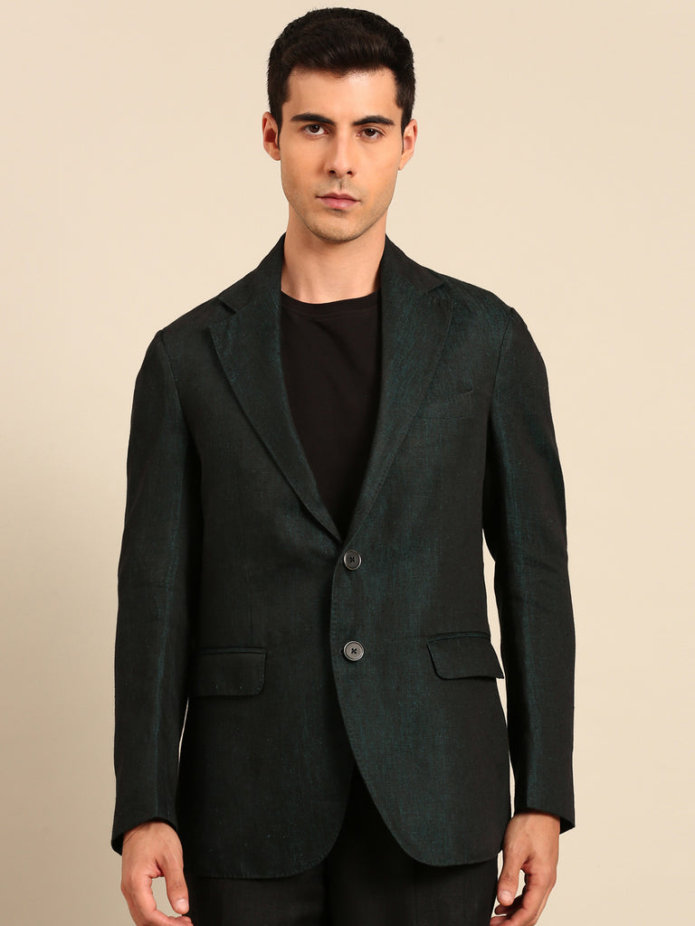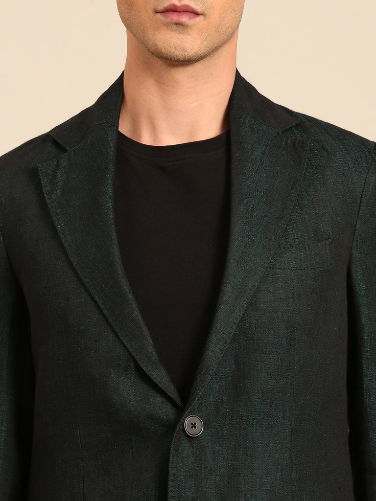 Peacock Blue 100% Linen Blazer - MMJ0174