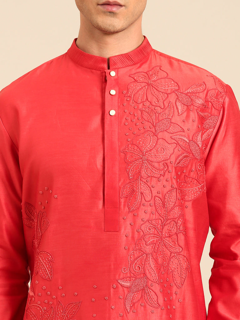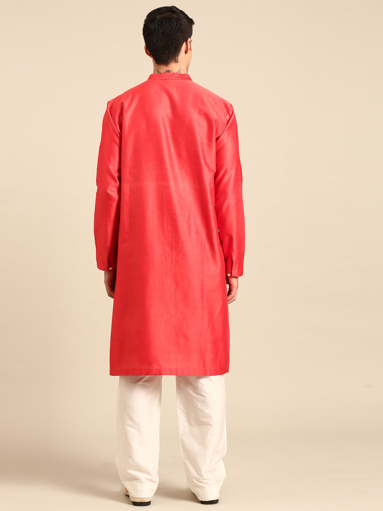 Crafted in rich Chanderi fabric, this rust orange kurta set paired with cream pants exudes warm sophistication. With its subtle sheen and graceful fall, it’s perfect for festive gatherings and elegant daytime events.