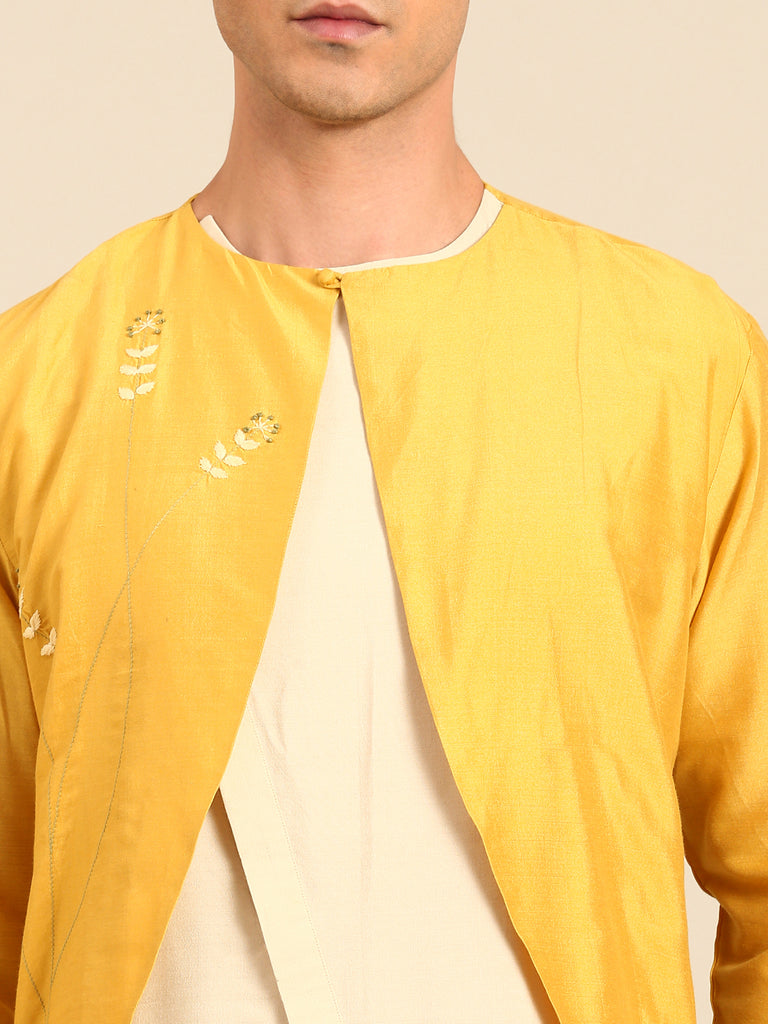 Yellow & Beige Silk Cotton Kurta Set - MMK0639