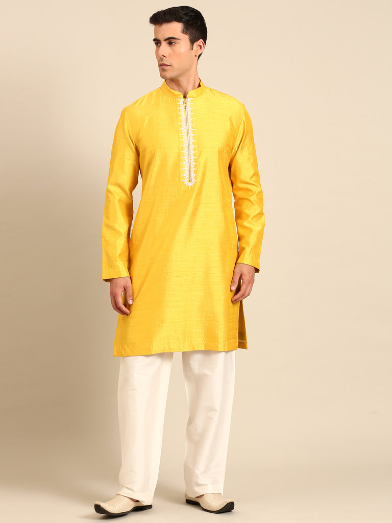 Yellow Bemberg Silk Kurta Set - MMK0638